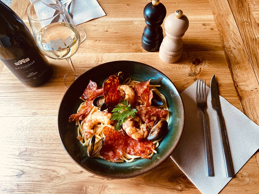 On the plate, freshness and quality local dishes are the order of the day, prepared with simplicity and precision. To enjoy this tasting, all you have to do is choose between its magnificent vaulted room with natural stone or its cobbled terrace.