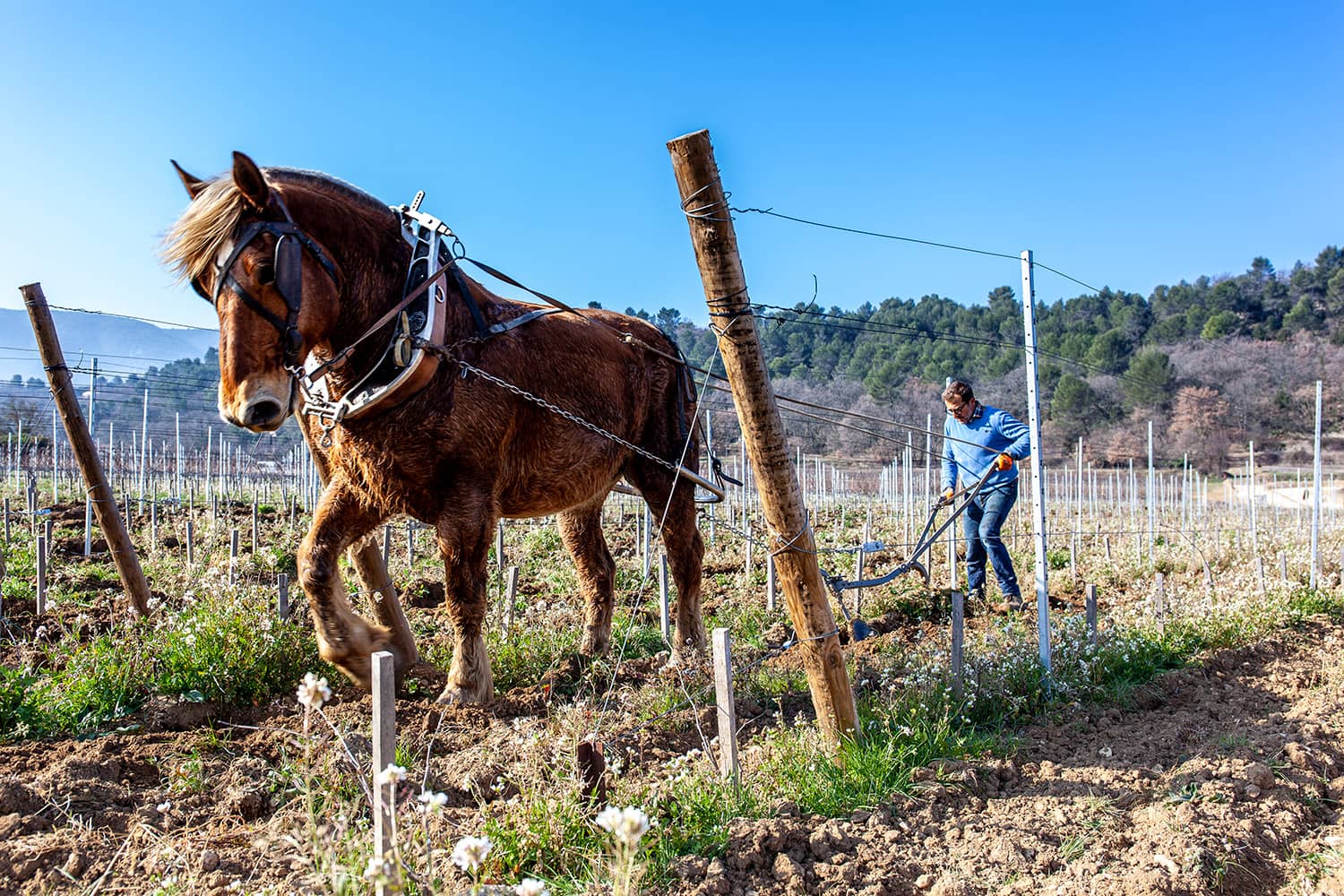 L’agroécologie et des pratiques éco-responsables rythment le quotidien du vignoble, également labellisé HVE (Haute Valeur Environnementale). Le labour à cheval, le recours au couvert végétal avec des semis régénératifs ou encore l’éco-pâturage permettent de protéger et d’enrichir les sols. L’installation de ruches et la restauration des haies bocagères, pour leur part, favorisent le développement de la biodiversité.